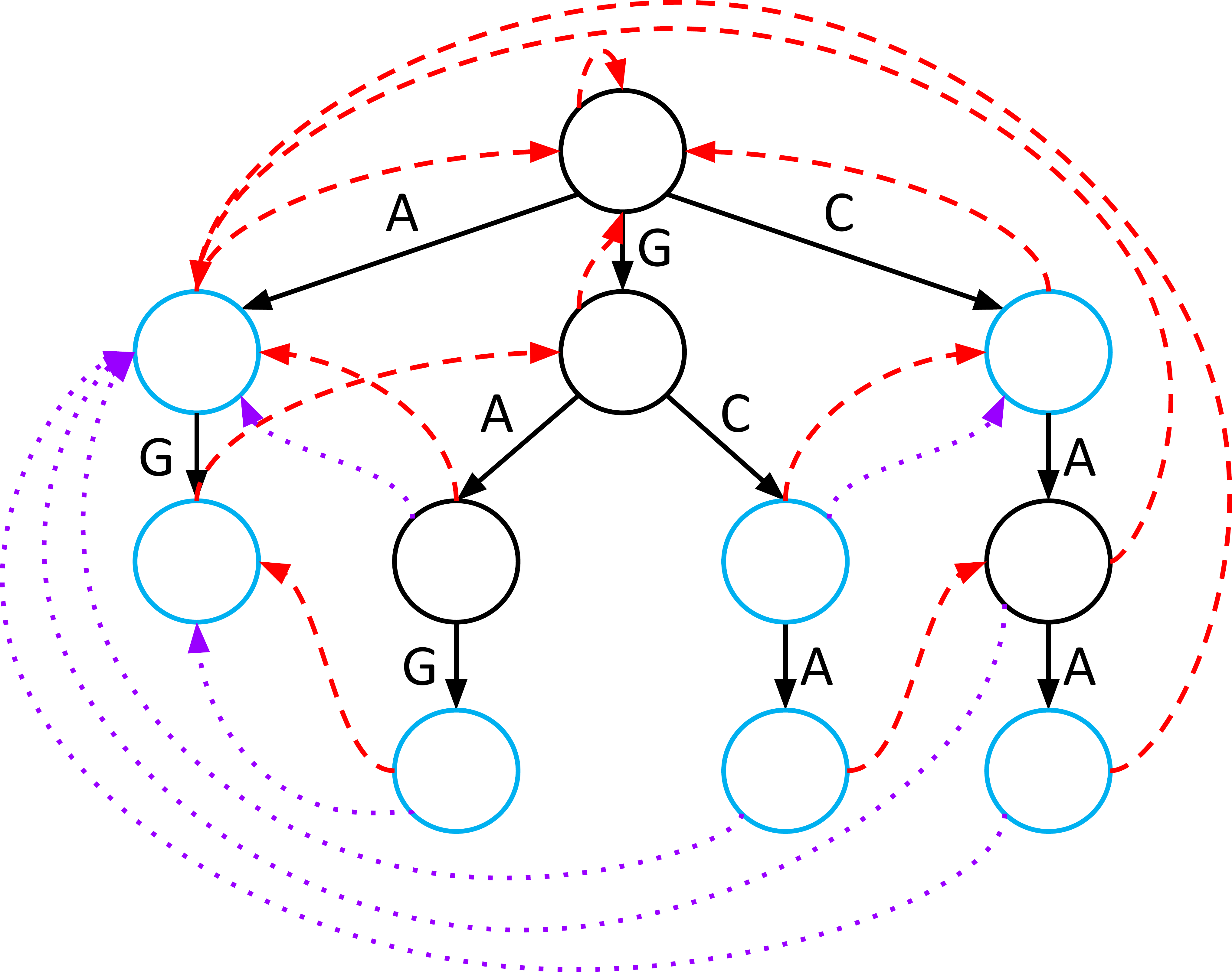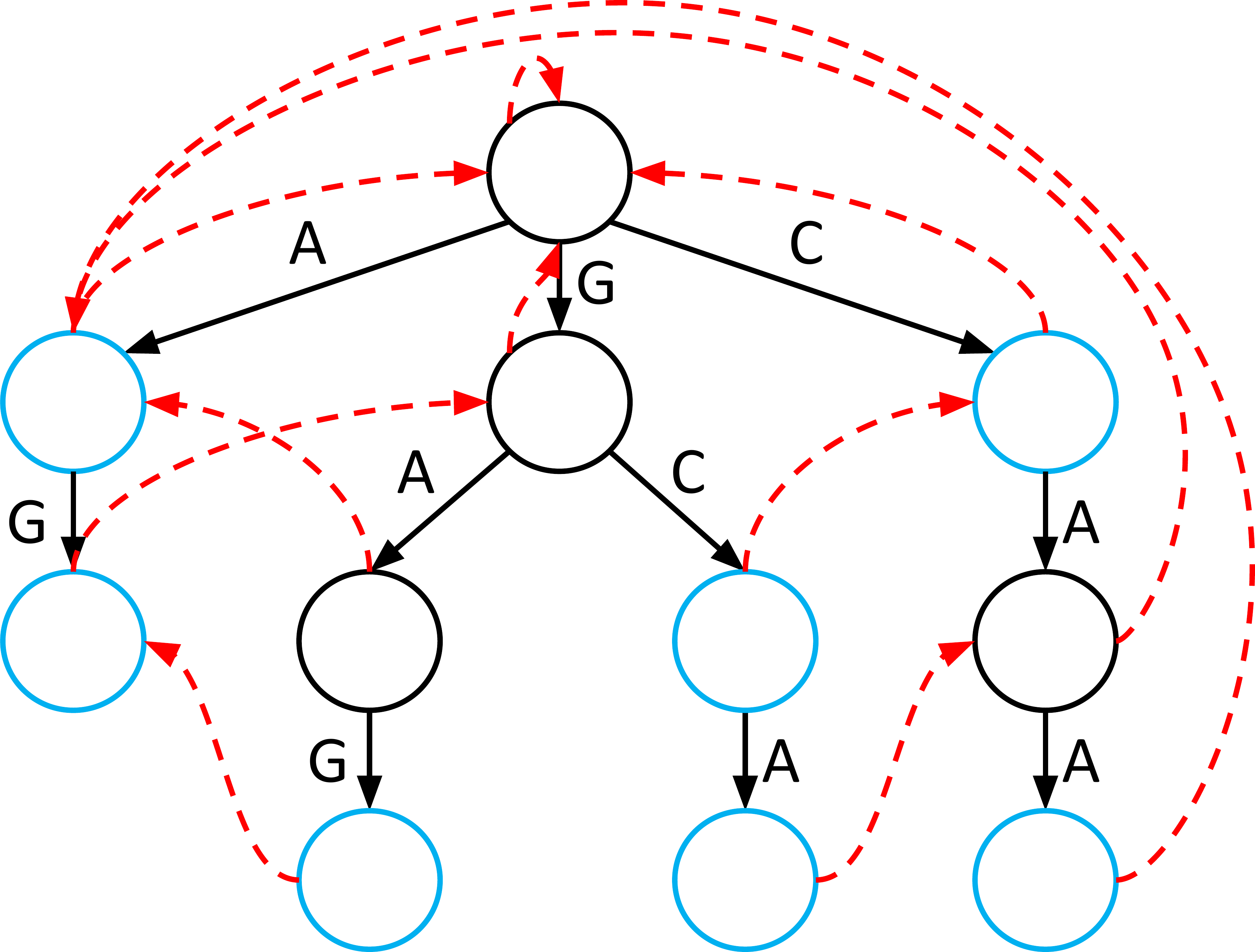 - If you fail: When the next character in the genome doesn’t match any child edge, you follow the failure link.