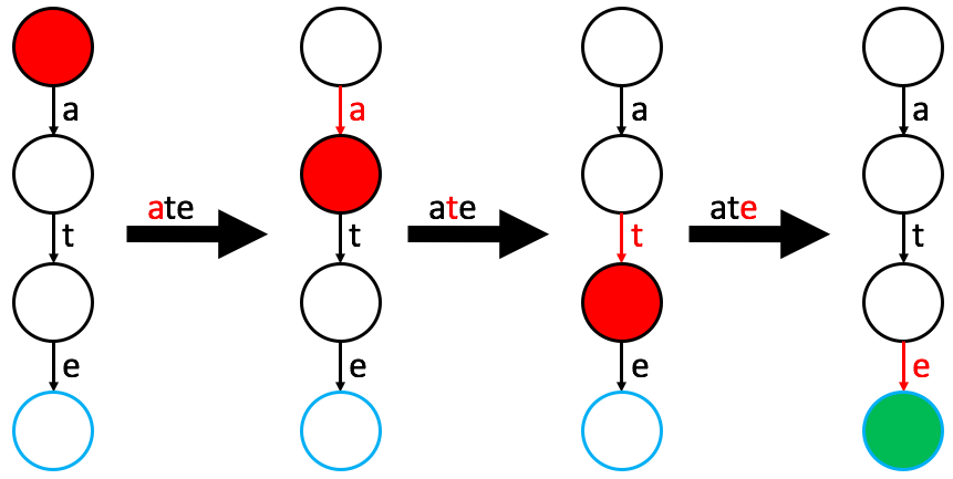 - Edge Labels: Characters are assigned to edges, not nodes.