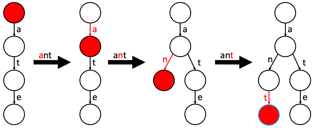 - Failure: You hit a “null” edge (the path doesn’t exist) or the final node is not marked as a word node.