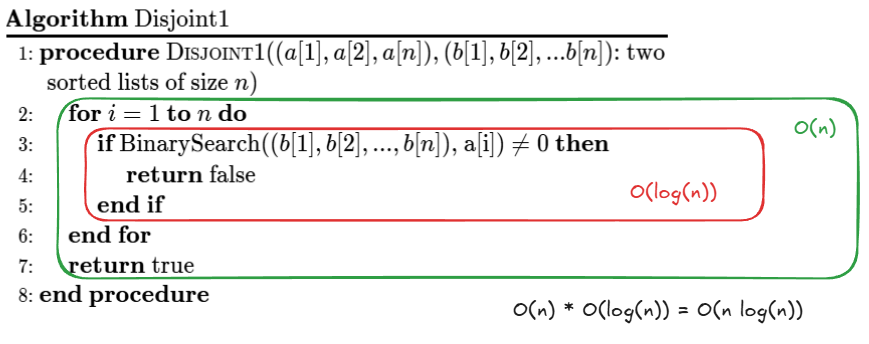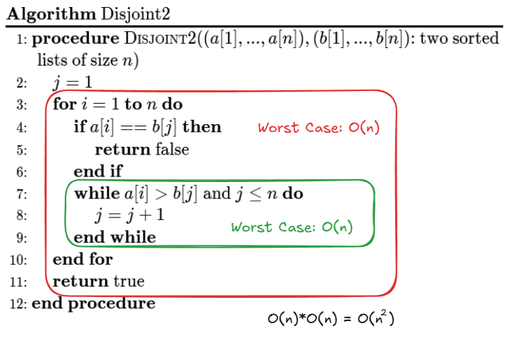 To check if two sorted lists are disjoint (no common elements), we use two pointers, and .