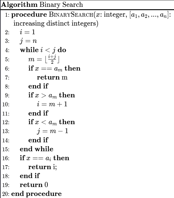 \begin{align*} n &\leq 2^k - 1 \\ n+1 &\leq 2^k \\ \log_{2}(n+1) &\leq k \\ k &= \boxed{\lceil\log_{2}(n+1)\rceil} \end{align*}$$ > [!CHECK] > > > This confirms that Binary Search grows at a Logarithmic rate, $O(\log n)$, making it incredibly efficient for large datasets. ![[Pasted image 20251106180059.png]] --- ## Formal Proof (Strong Induction) **Claim:** Binary Search correctly finds the target in a sorted list of size $n$. - **Base Case ($n=1$):** The mid-point is the only element. The algorithm checks it and correctly returns the index or "not found." - **Inductive Hypothesis:** Assume Binary Search is correct for all sorted lists of size $m < n$. - **Inductive Step:** For a list of size $n$, the algorithm compares the mid-point. - If equal, it returns correctly. - If not equal, it calls itself on a sub-list of size roughly $n/2$. - Since $n/2 < n$, the **Inductive Hypothesis** applies, and the sub-search is guaranteed to be correct. --- ## Related Notes - [[Linear Search vs Binary Search]] — Visualizing why $O(\log n)$ is asymptotically faster. - [[Merge Sort]] — The most common way to ensure a list is sorted before searching. - [[Asymptotic Notation]] — More on the $O$ notation used here.