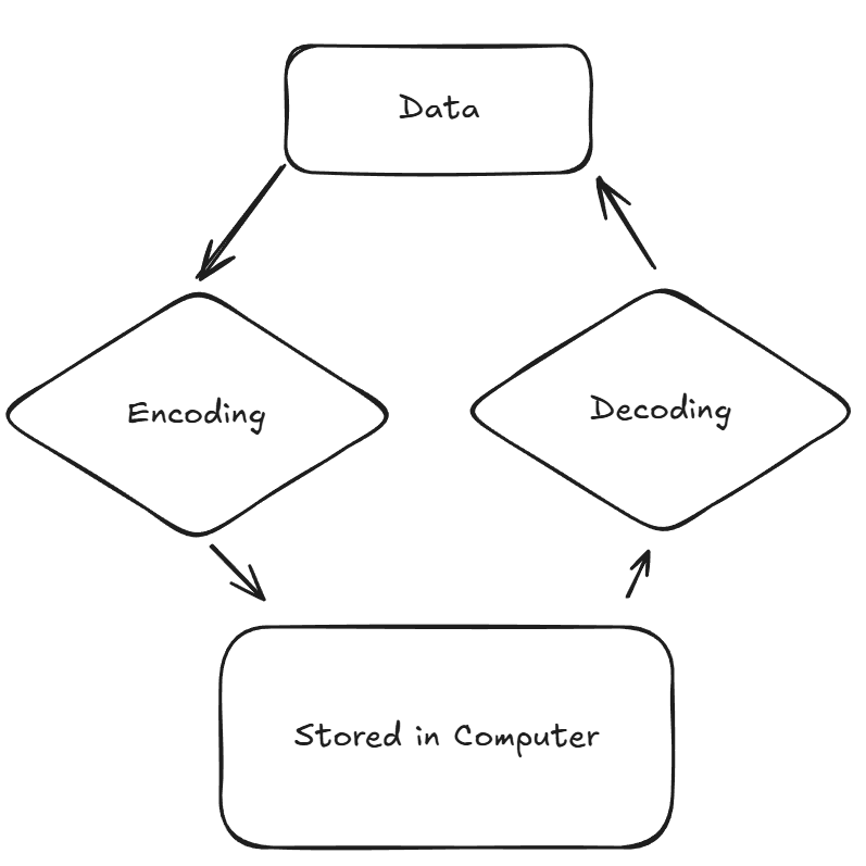 An encoding of a set of Data is a map where the domain is the Set of Data and the codomain is a set of binary strings.