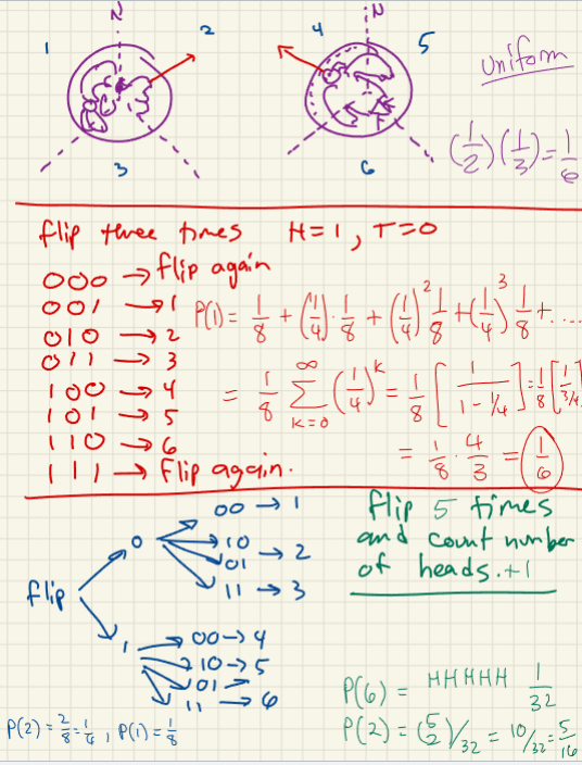 - Simulating a Die with a Coin: This requires multiple flips to create a large enough sample space (at least outcomes) to cover the 6 faces of a die. Outcomes that do not map to a die face are handled via Rejection Sampling.