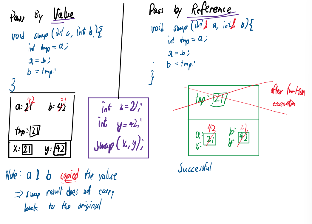 Call by Reference (&): The function acts on the original. Fast, allows modification.