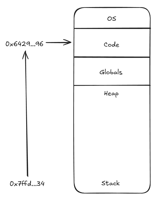As seen in the output (e.g., a: 0x7ffd... vs simple: 0x6429...), these addresses reside in very different parts of memory: