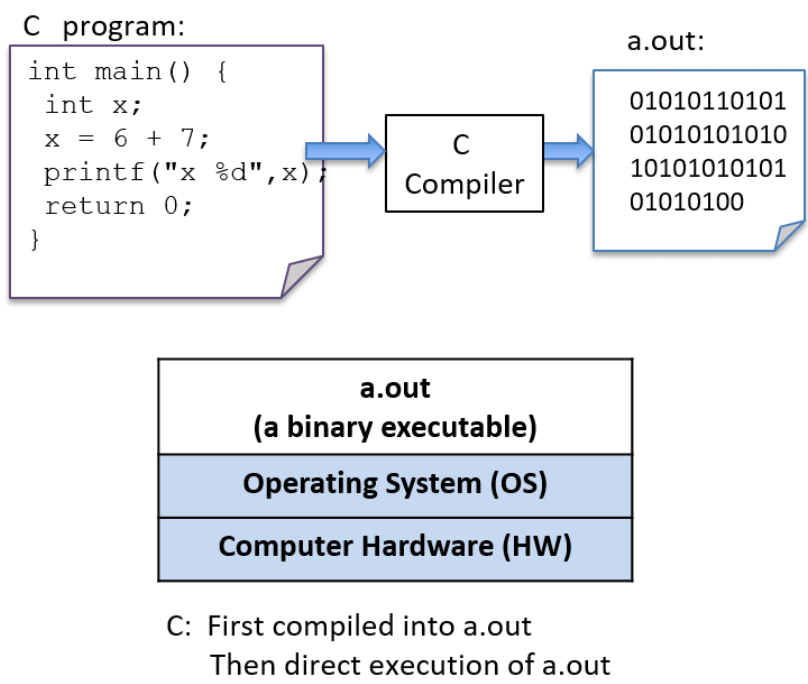 - Compiler: Program that translates C source code into a binary executable1 form that computer hardware can directly execute